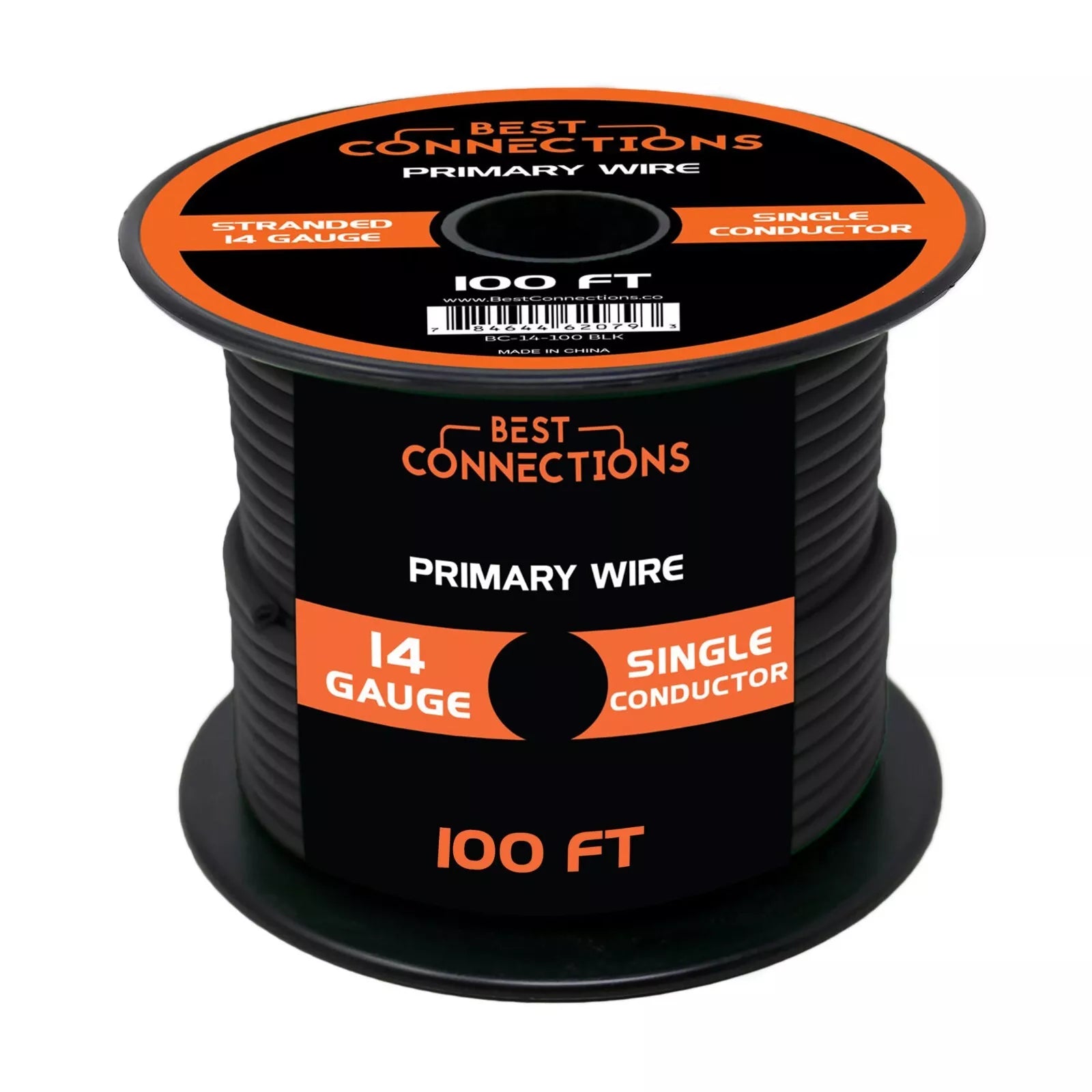 Audiopipe 14 Gauge Car Audio Primary Wire (100ft–Black)– Remote, Power/Ground Electrical Wire for Trailer, Automotive, Lighting Circuits