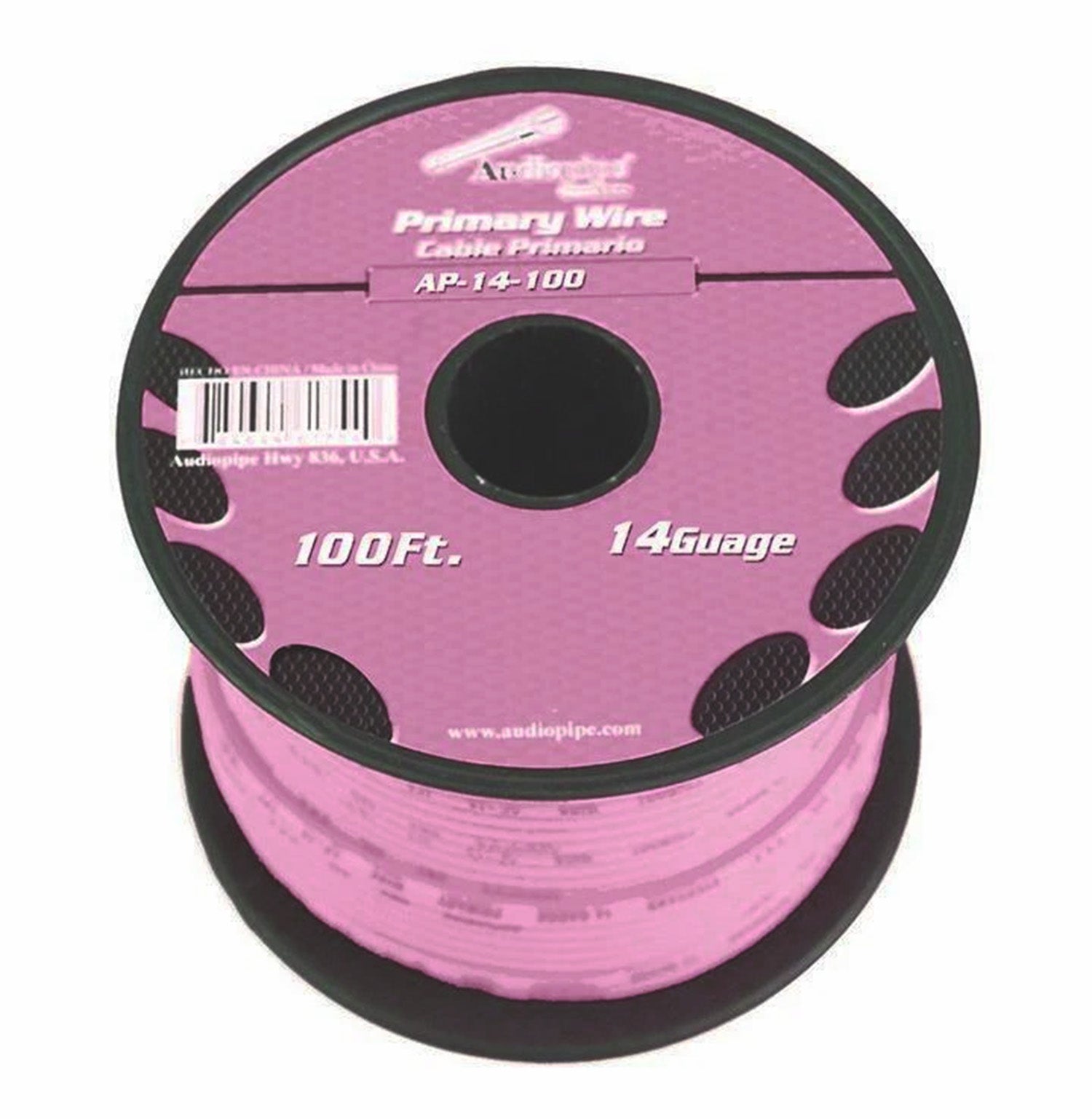 Audiopipe 14 Gauge Car Audio Primary Wire (100ft–Pink)– Remote, Power/Ground Electrical Wire for Trailer, Automotive, Lighting Circuits