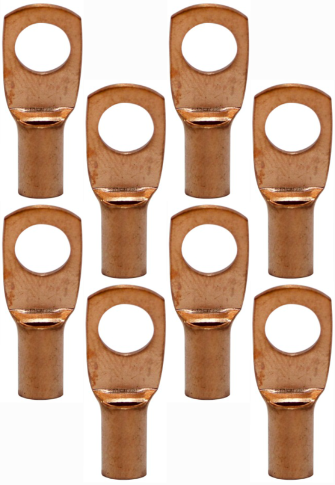 4 Pack Pipemen's Installation Solution 8 Gauge Copper Ring Tongue Terminal 1/4" IS-PTRC-8-8