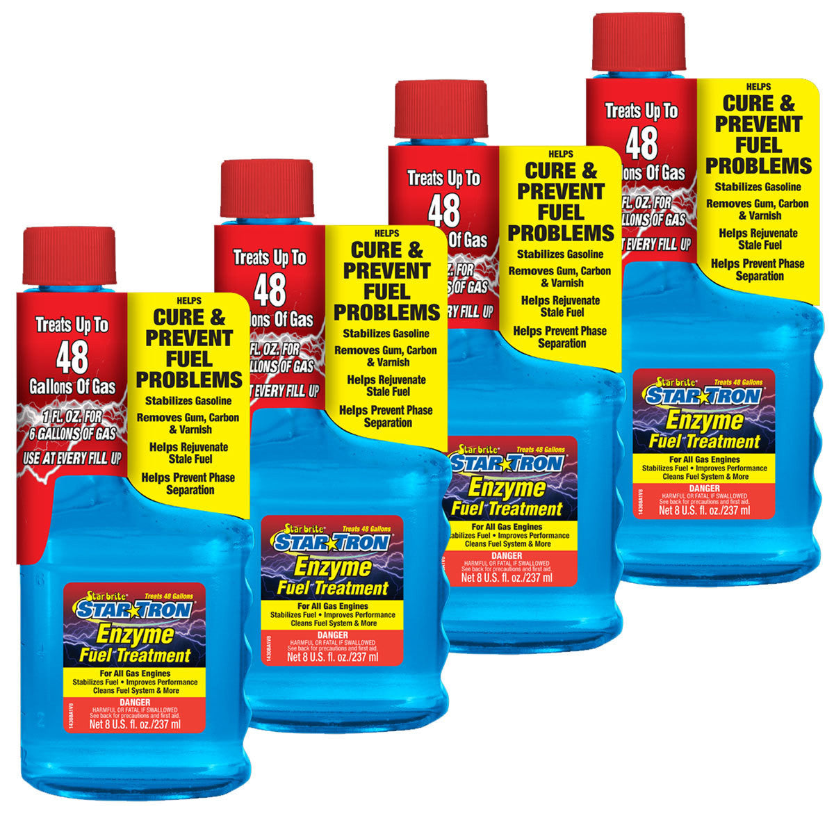 Star Tron Enzyme Fuel Treatment is a multifunctional fuel additive which uses a unique enzyme technology that allows all engines to start easily and run smoothly, even when using ethanol-blended fuel or after sitting idle for months. Star Tron allows fuel to burn more completely, which results in maximum performance, fuel efficiency and reliable operation. Star Tron will stabilize fuel for up to two years, preventing the formation of gums and other solids that clog carburetors and fuel injectors. Star Tron helps prevent phase separation by dispersing water throughout fuel as submicron-sized droplets that can be safely eliminated while the engine operates. Star Tron Small Engine formula is ideal for use in all gas engines including; boats, cars, trucks, motorcycles, small equipment as well as engines that use pre-mix fuel.