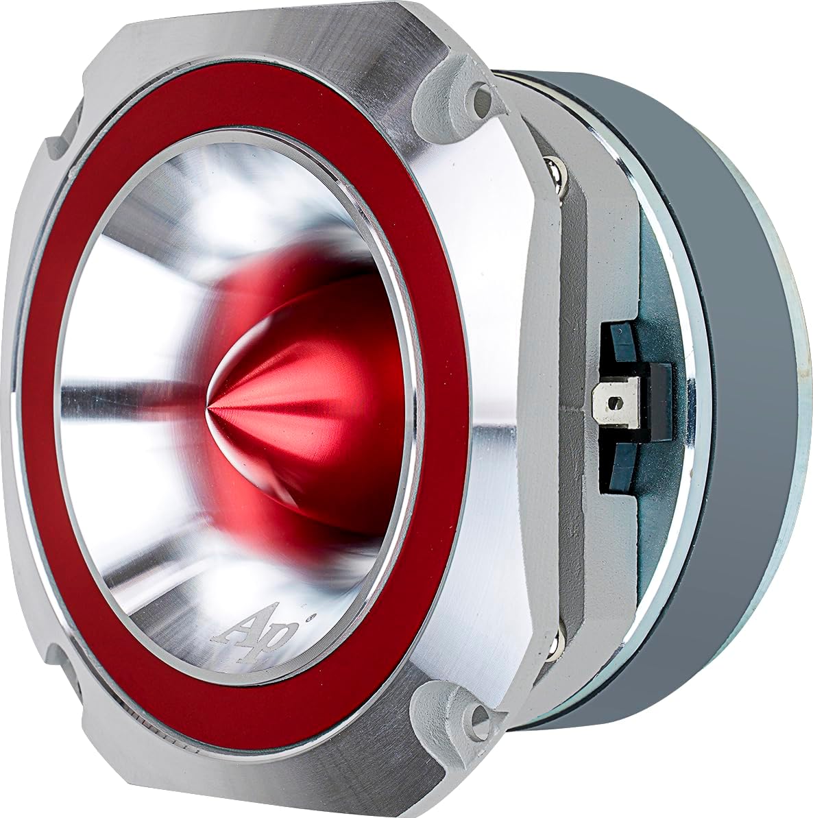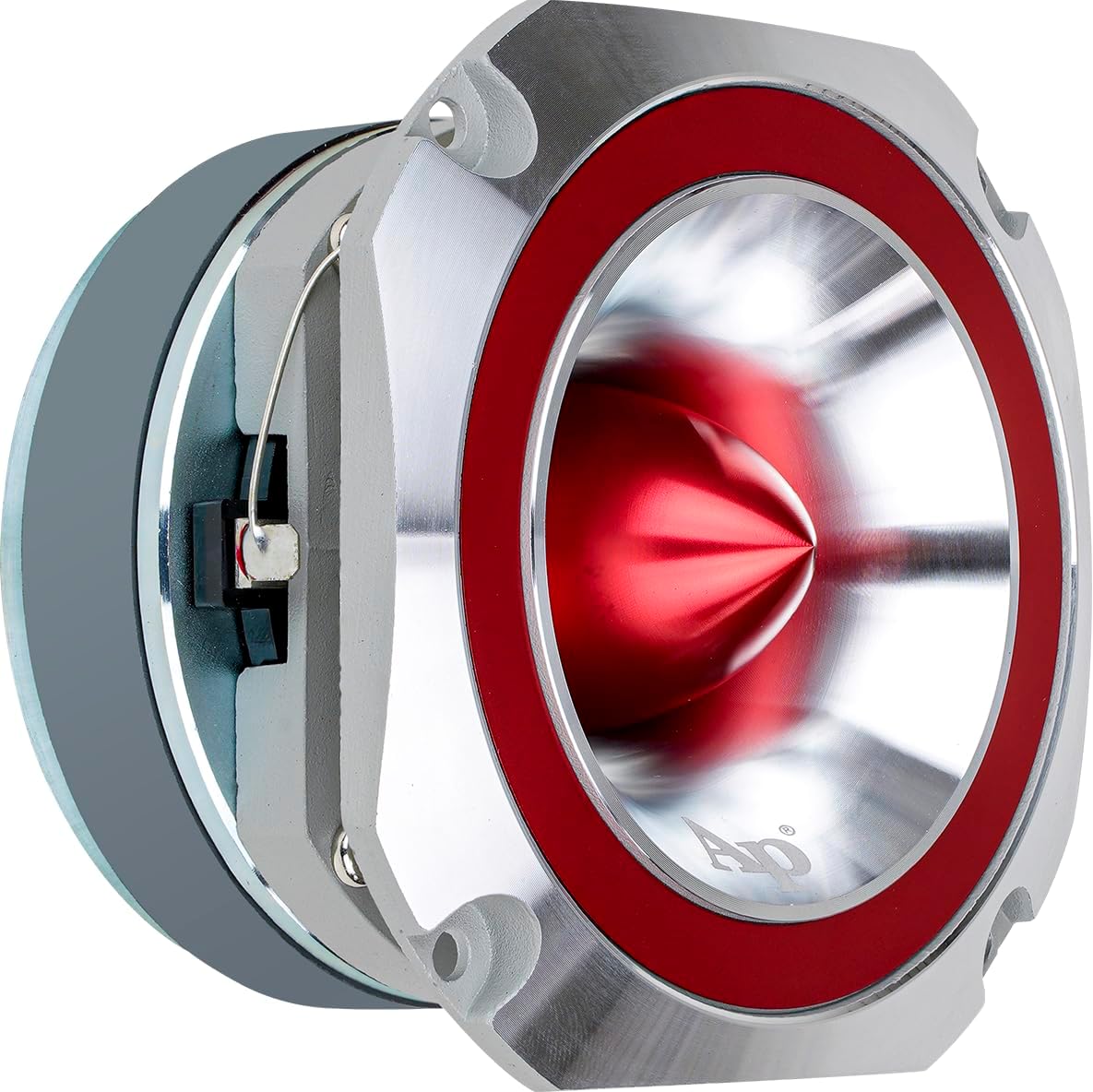 Audiopipe ATR-4053 RED Eye Candy Aluminum Tweeter Diamond Chrome Cutting Finish bullet super tweeter! With high frequency response up to 22KHz and a sensitivity of 107 dB can keep up with even the most demanding speaker systems. A square faceplate makes it easier to install, made from a strong aluminum horn, which offers a smooth response and extremely high efficiency, enabling it to cover a wide frequency range and offer a smooth response.