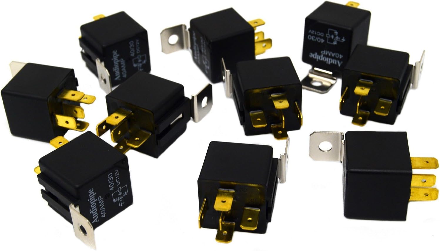 Audiopipe 10 Pack 12 Volt DC 30/40 Amp Sealed Relay Metal Tab Car Audio Alarm