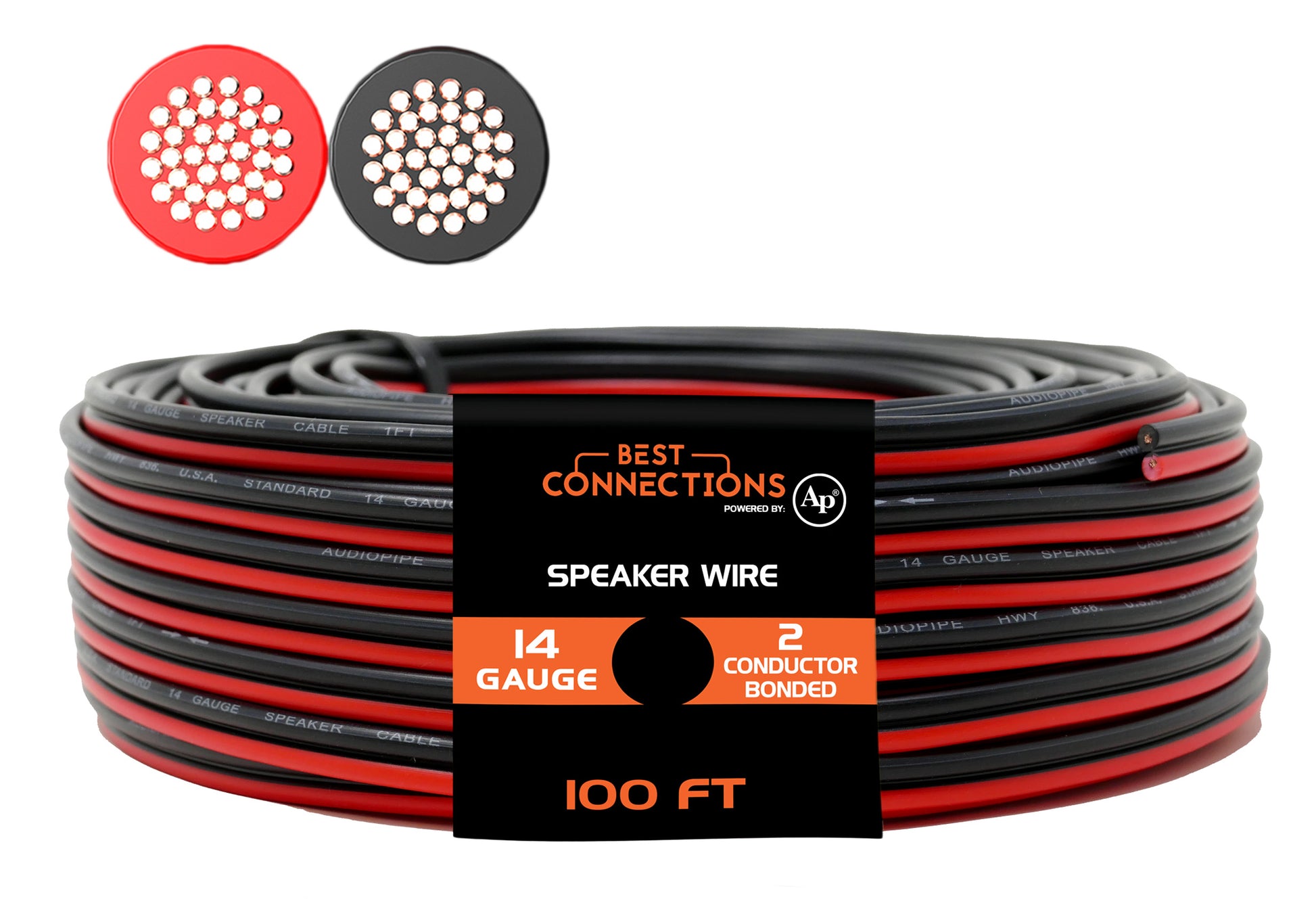 Audiopipe 14 Gauge Speaker Zip Wire (100 Feet) – Primary Bonded Red & Black Speaker Cables - Durable Stranded Speakers Wire for Car Audio, Automotive, Home Theatre and Trailer Harness Wiring
