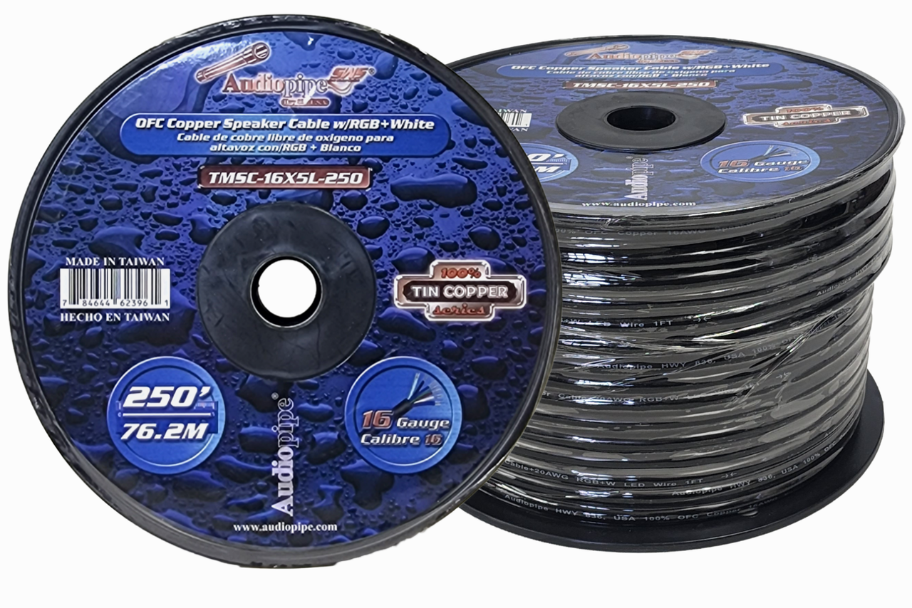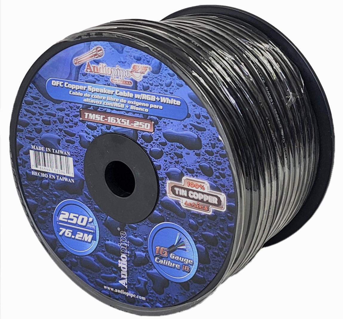 Audiopipe 16 Gauge 250 Feet OFC Tin Copper Marine Speaker Cable RGB Plus White