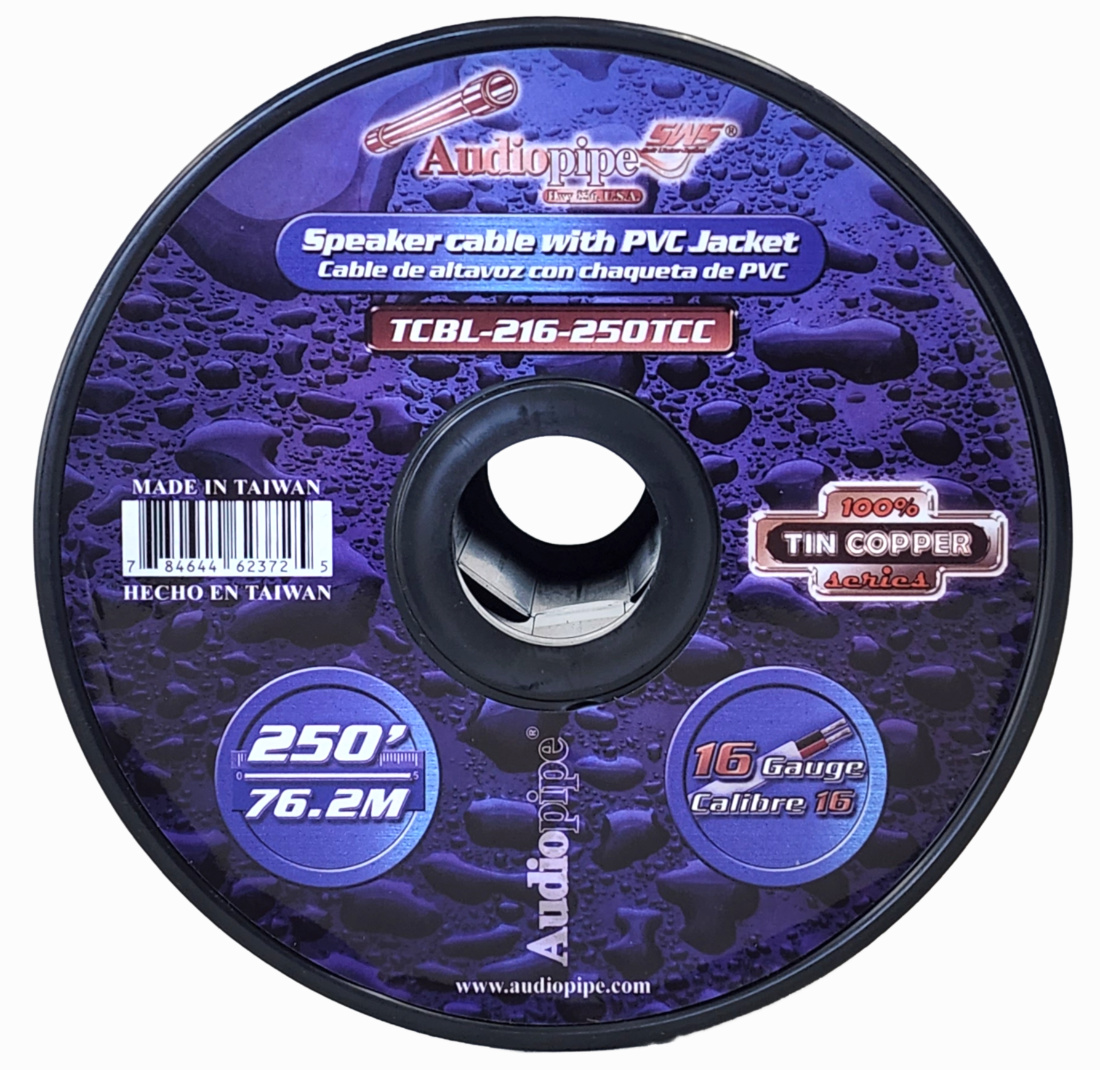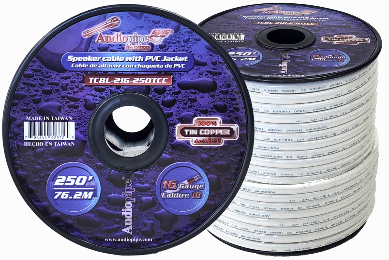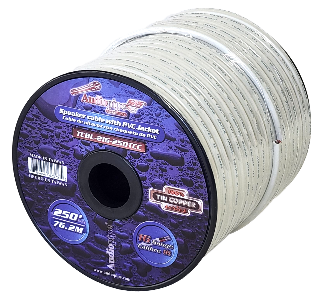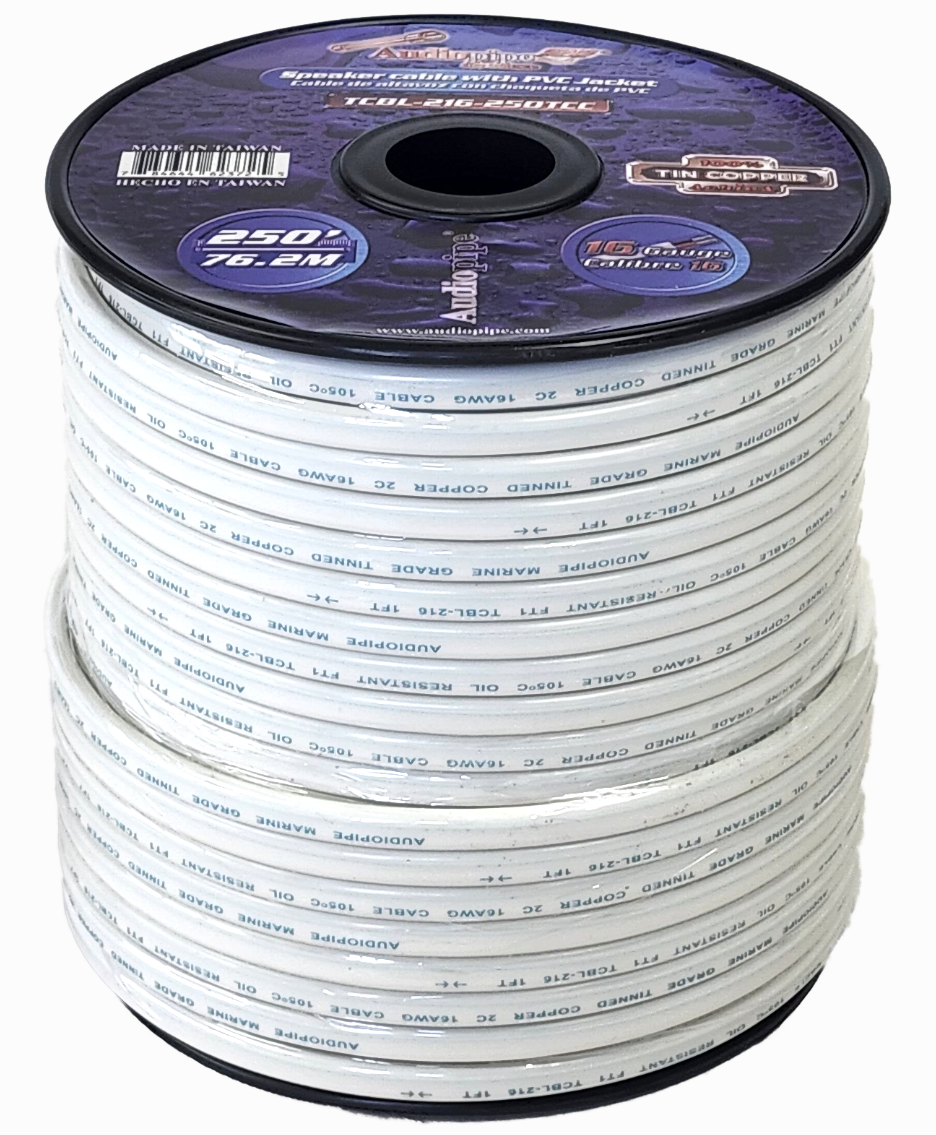 Audiopipe 16 Gauge 250 Feet Tin Copper Marine Speaker Cable Wire With White PVC Jacket