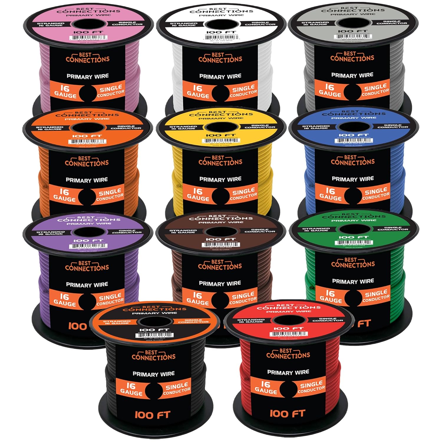 16 GAUGE CAR AUDIO PRIMARY WIRE (100FT–11 ROLLS SET)– REMOTE, POWER/GROUND ELECTRICAL WIRE FOR TRAILER, AUTOMOTIVE, LIGHTING CIRCUITS –600FT Total