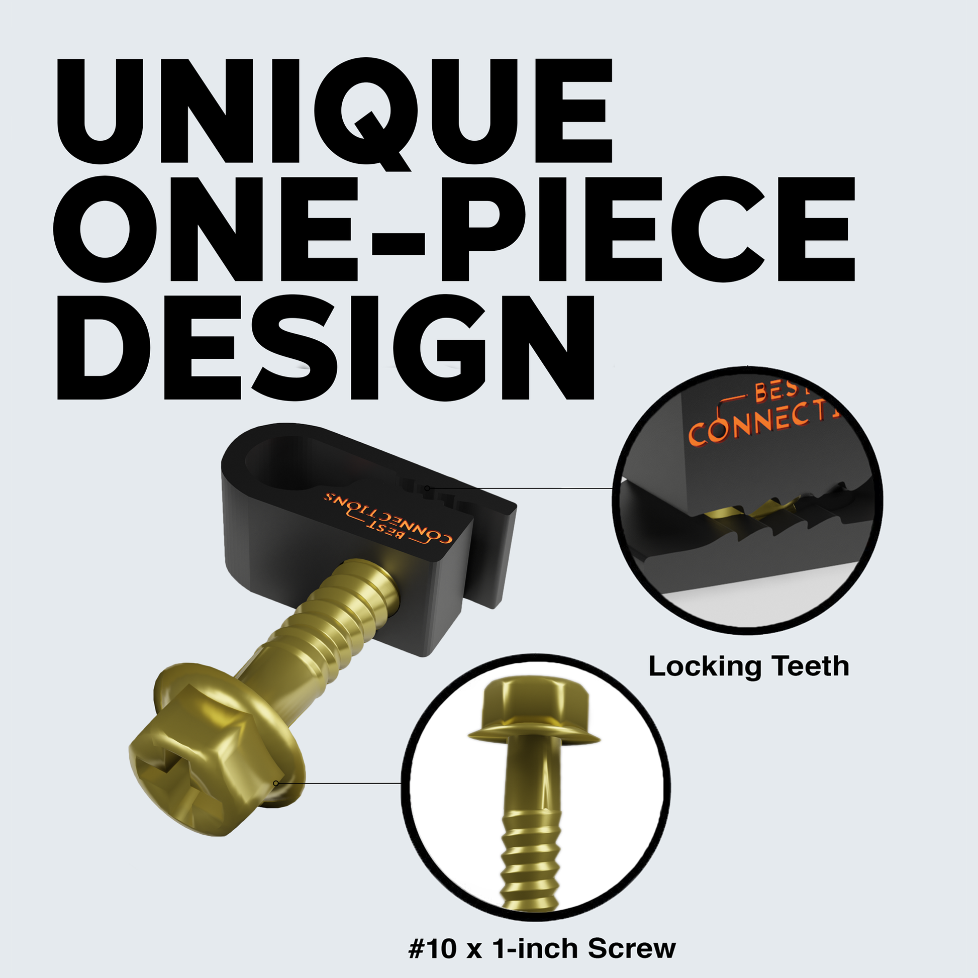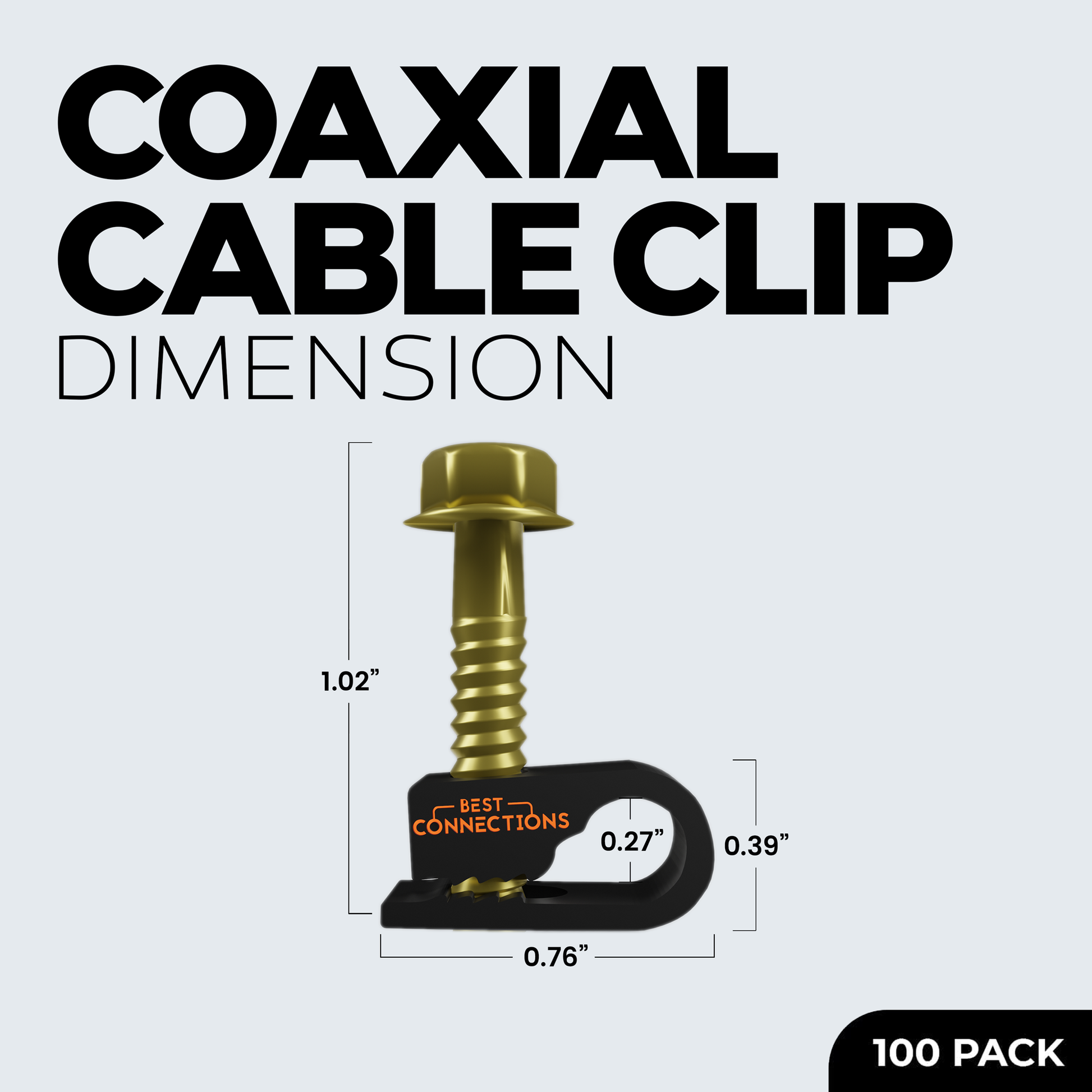 BEST CONNECTIONS Coaxial Cable Clips with Pre-Inserted Screw (100 Pack) – Black Single Cable Mounting Clamps for Coax Cable (RG6, RG59) and Ethernet Cable – Cord Fastener/Strain Relief Clip