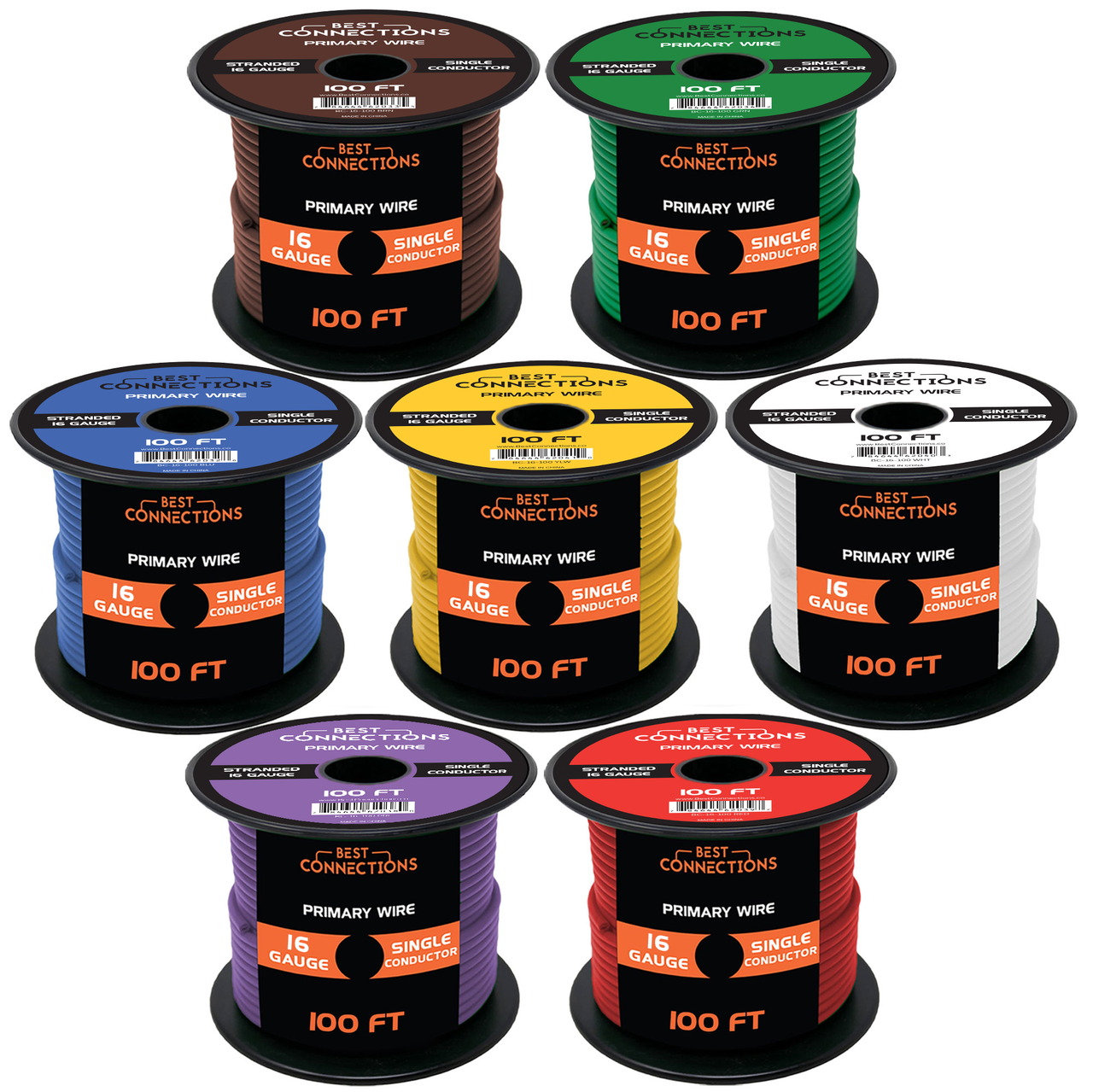 7 WIRES, 7 COLORS & 100ft PER ROLL - This Convenient Roll Offers A Generous 100ft Length Of Wire, Comprising Seven Individual Wires In Seven Distinct Colors. Each Wire Is A Single Conductor, Providing Flexibility For Various Applications Such As Primary, Remote, Turn On, Hook-Up, Or Ground Wire Purposes.