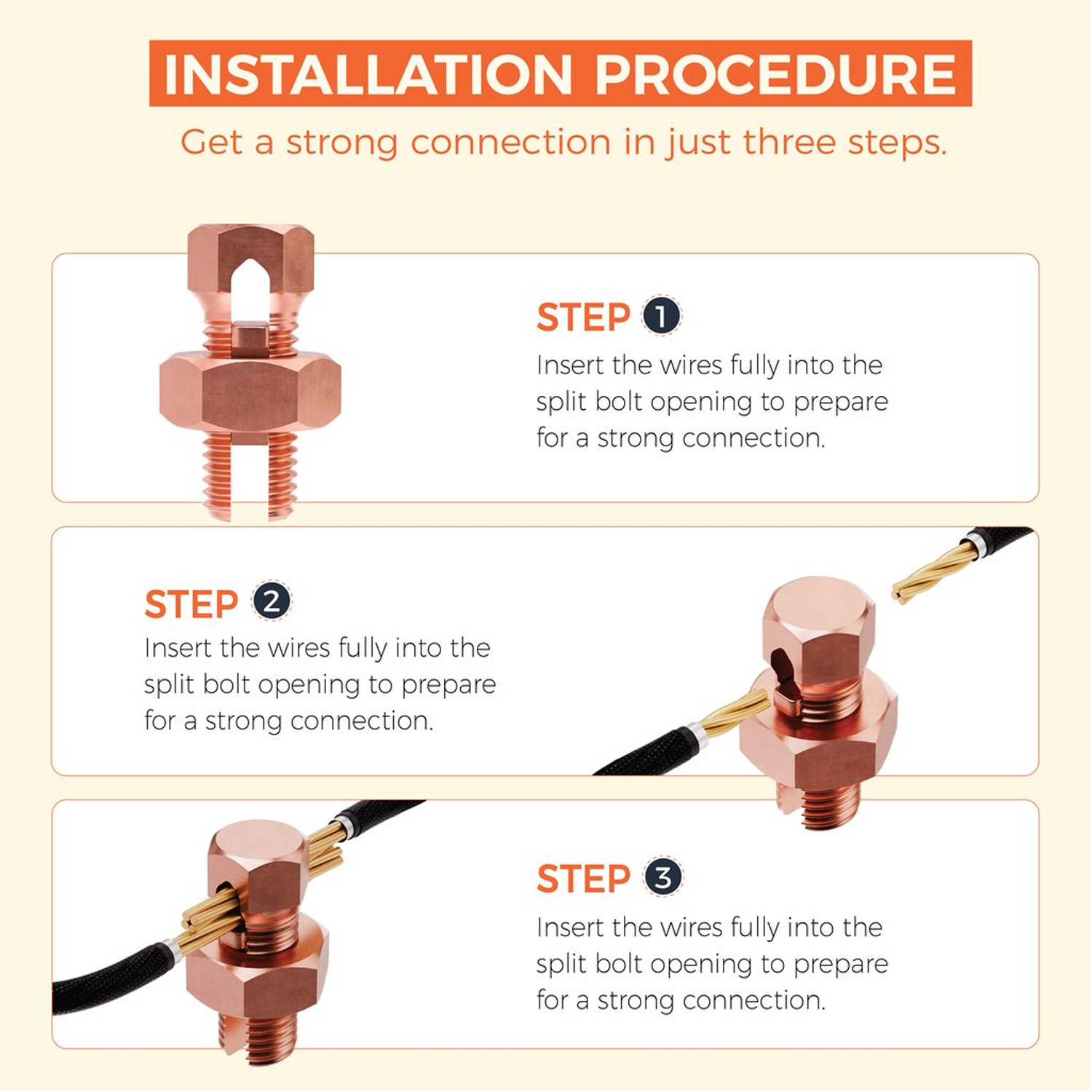 BEST CONNECTIONS 20 Pack High Strength Copper Split Bolt Connectors 4 Gauge to 8 Gauge for Solid Wire