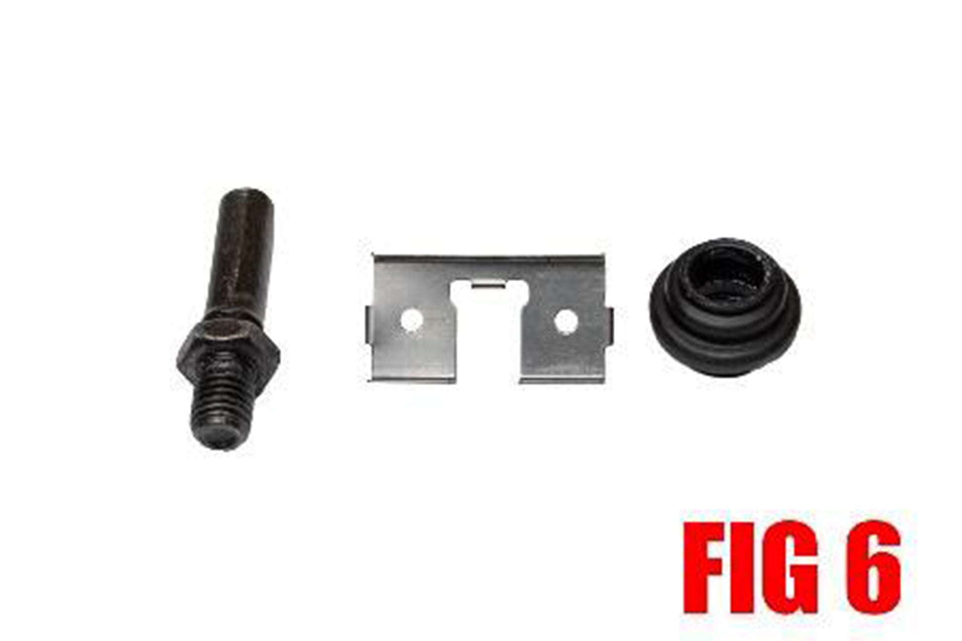 7. Un-thread the caliper slide pin from the carrier using the appropriate size wrench. Remove the slide pin dust boot. Remove the brake pad stop. This part is usually held in place with a little bit of adhesive. Lightly pry it loose with a small screwdriver. (FIG 6)