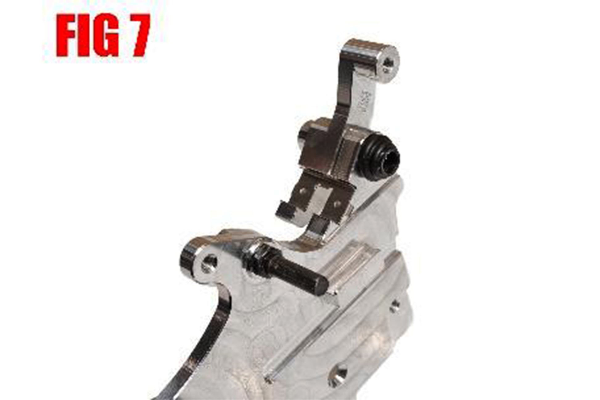 8. Apply red thread lock on the threads of the caliper slide pin and thread it into your new brake caliper carrier. Torque slide pin to your motorcycle manufacturers recommended specifications. Apply a thin layer of grease on the slide pin. (FIG 7)