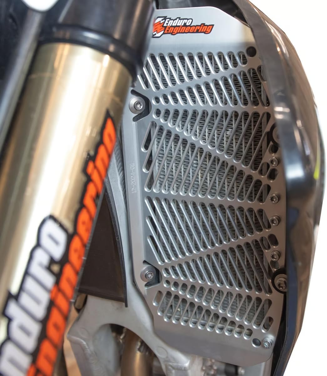 These Radiator Guards get extremely solid mounting points, an easy installation, with plenty of room. It's all about protecting your bike and the fragile parts it has. And with this Radiator Guards you can get the bomb-proof protection on valuable areas of your motor. This guard is a billet part made from tough yet light aluminum alloy and it comes in a bare finish that shows off Enduro Engineering’s precision CNC machining.