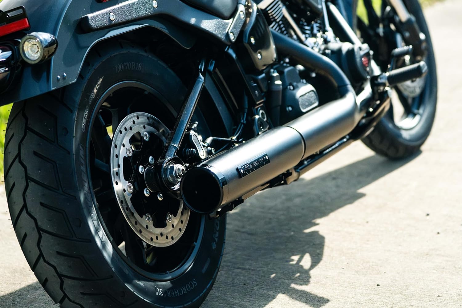 Rinehart HP40 2-into-1 Slip-on Harley Softail 2025-Later Black End Caps with Black Badge