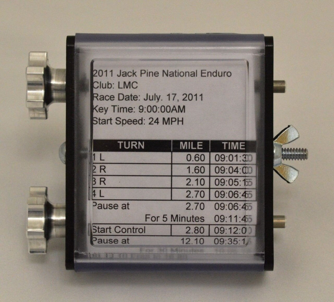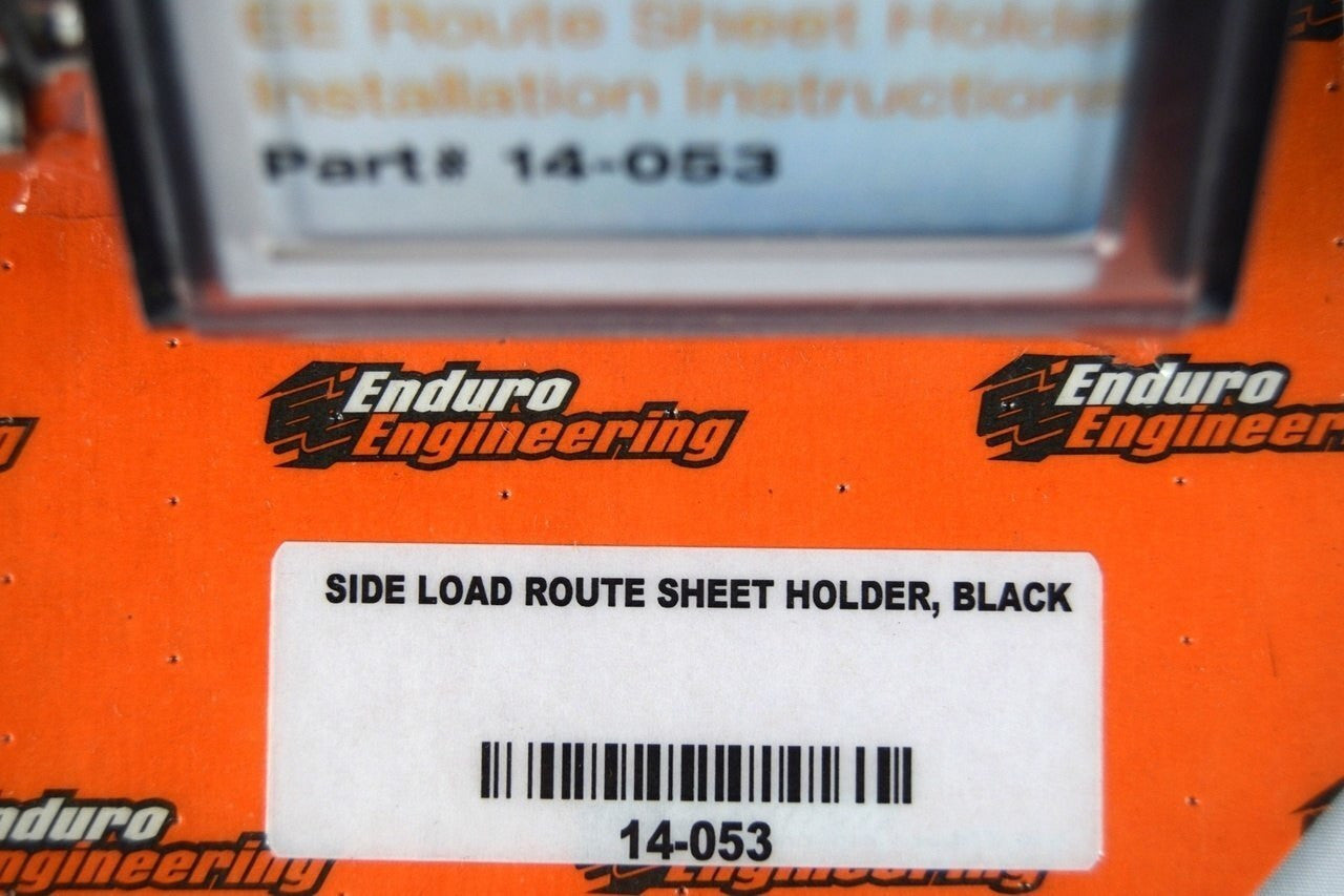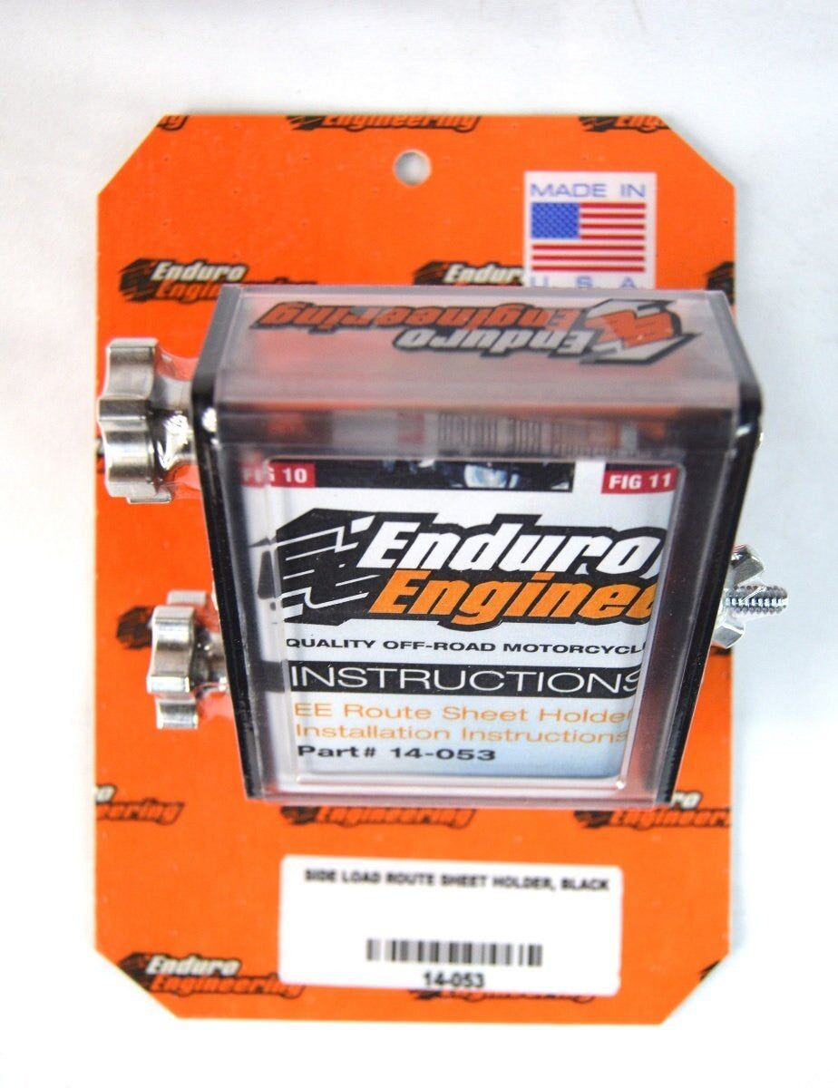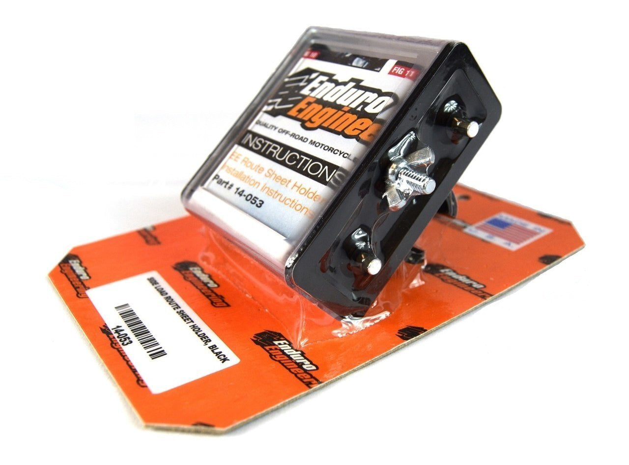 The newly designed Enduro Engineering side load route sheet holder is ideal for any dual sport or enduro enthusiast. The side load option makes it easy to load and the 2 1/4"x2 1/2" viewing window makes your route sheet easy to read.