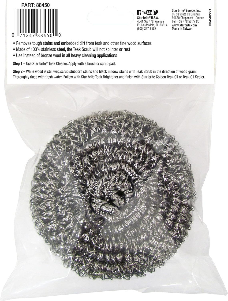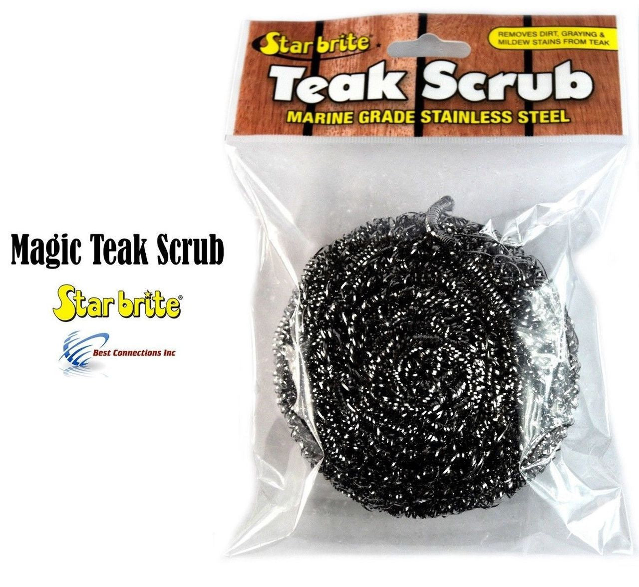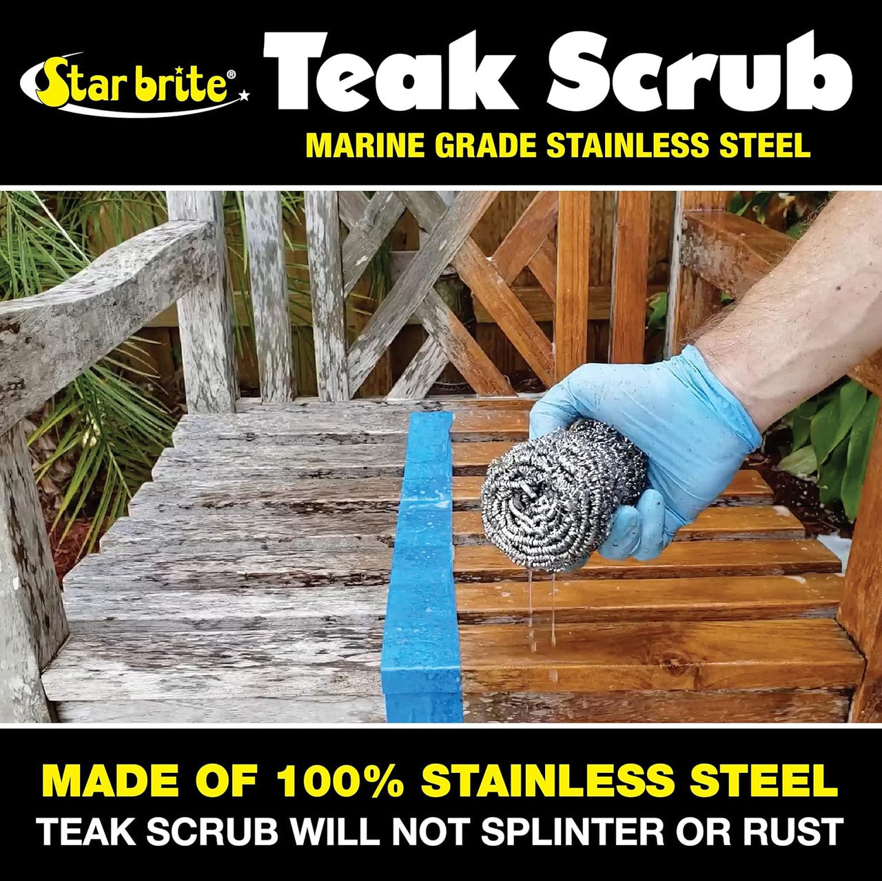 Marine grade 100% stainless steel scrub specifically designed to remove embedded dirt and grime from teak and other fine wood. Replaces bronze and steel wool as Teak Scrub will not splinter, rust or wear out. Teak Scrub is also great for refinishing wood furniture and removing surface oxidation from stainless steel and metal tools.