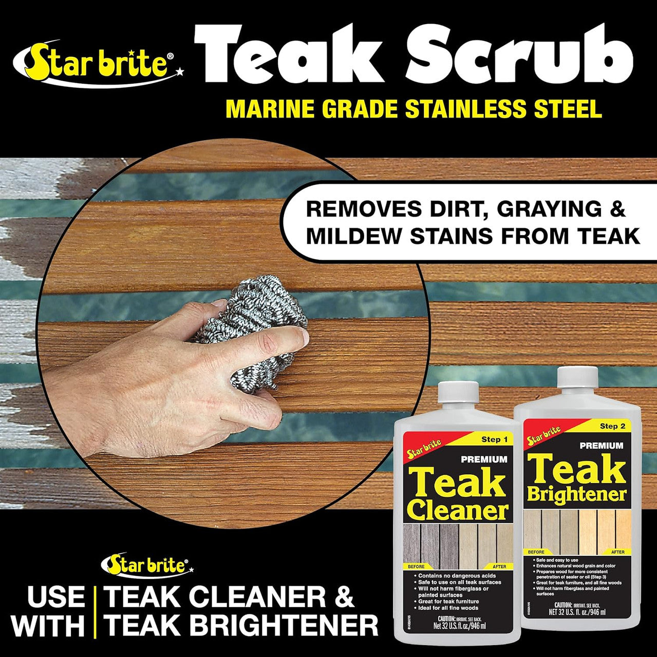 Marine grade 100% stainless steel scrub specifically designed to remove embedded dirt and grime from teak and other fine wood. Replaces bronze and steel wool as Teak Scrub will not splinter, rust or wear out. Teak Scrub is also great for refinishing wood furniture and removing surface oxidation from stainless steel and metal tools.